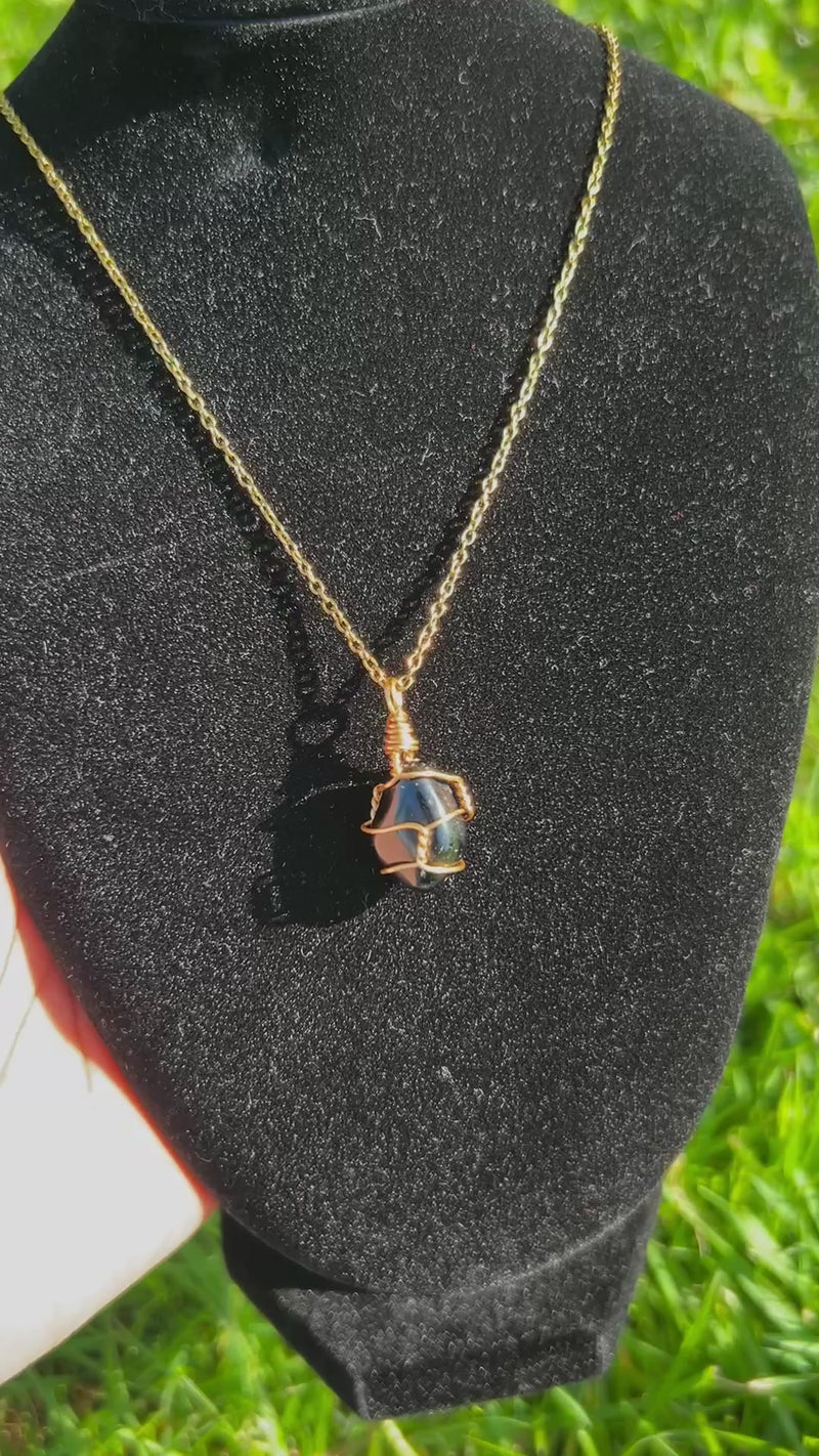Black Obsidian Necklace - Handmade Wire Wrapped Crystal Pendant