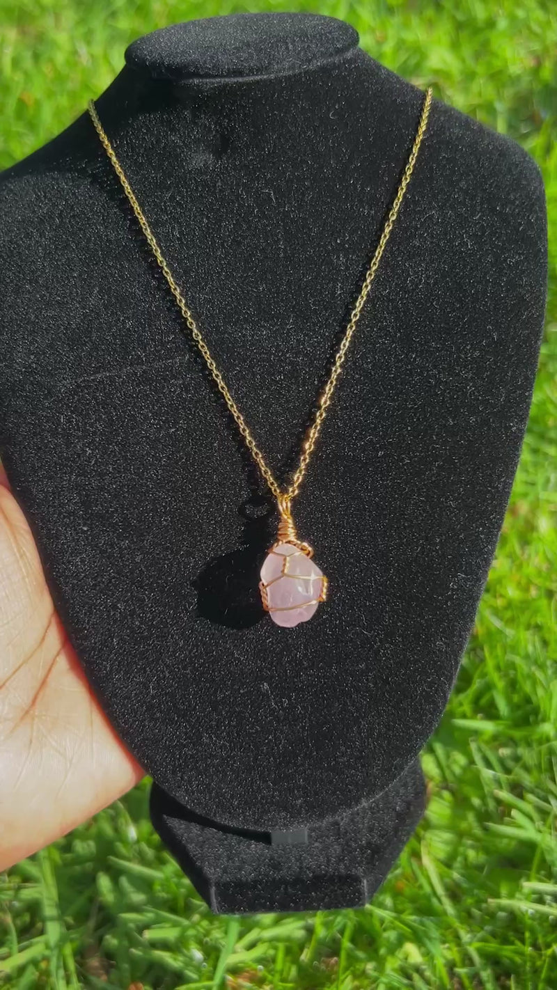 Rose Quartz Necklace - Handmade Wire Wrapped Crystal Pendant